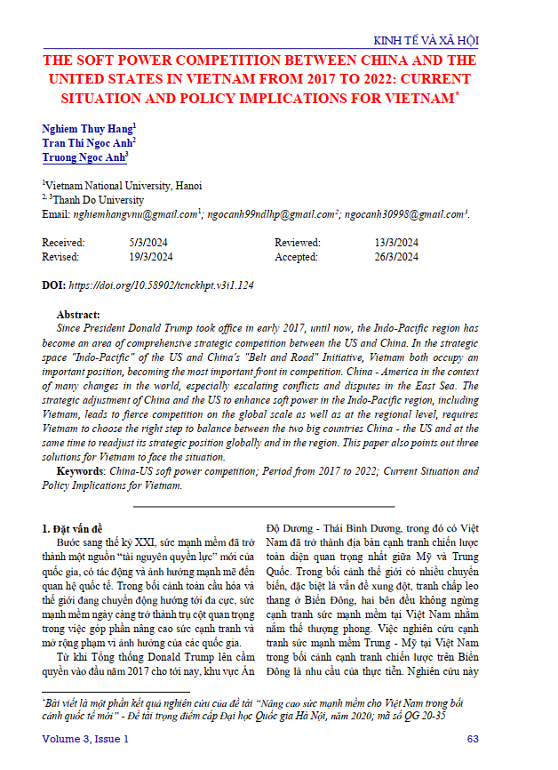 Cạnh tranh sức mạnh mềm Trung – Mỹ tại Việt Nam giai đoạn từ năm 2017 đến năm 2022: Thực trạng và hàm ý chính sách cho Việt Nam